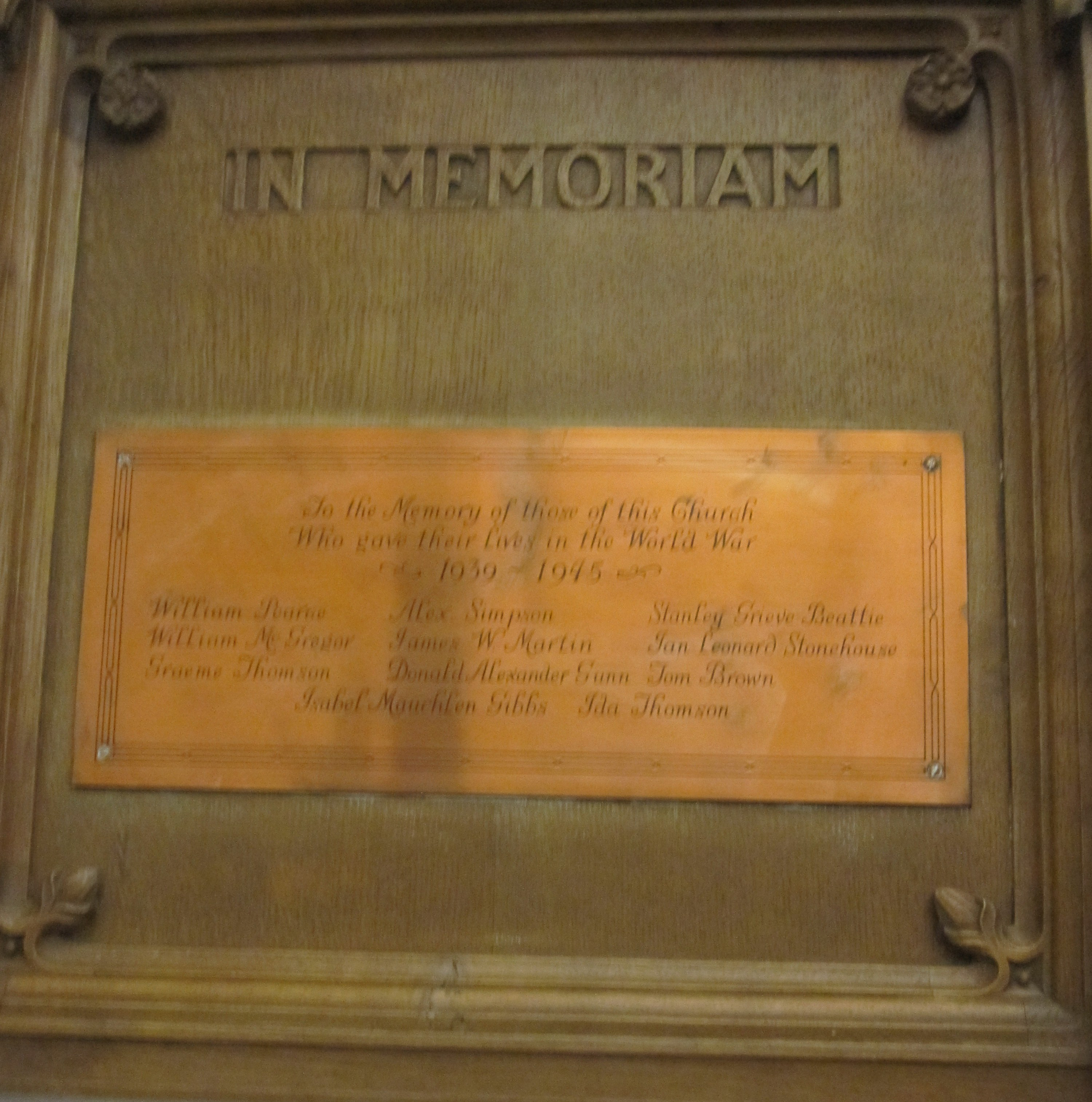 To the memory of those of this Church who gave their Lives in the World War 1939 - 1945